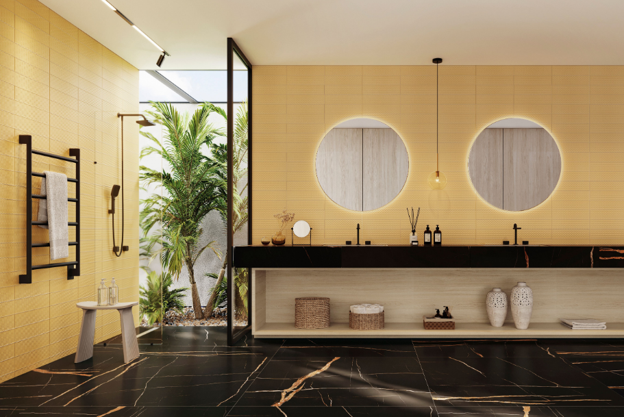 Modelos acetinados com borda retificada são os mais indicados para esse ambiente. O acabamento acetinado oferece maior aderência em áreas molhadas, o que torna o piso do box mais seguro. Já a borda retificada reduz o espaço entre as peças e deixa o rejunte quase imperceptível.