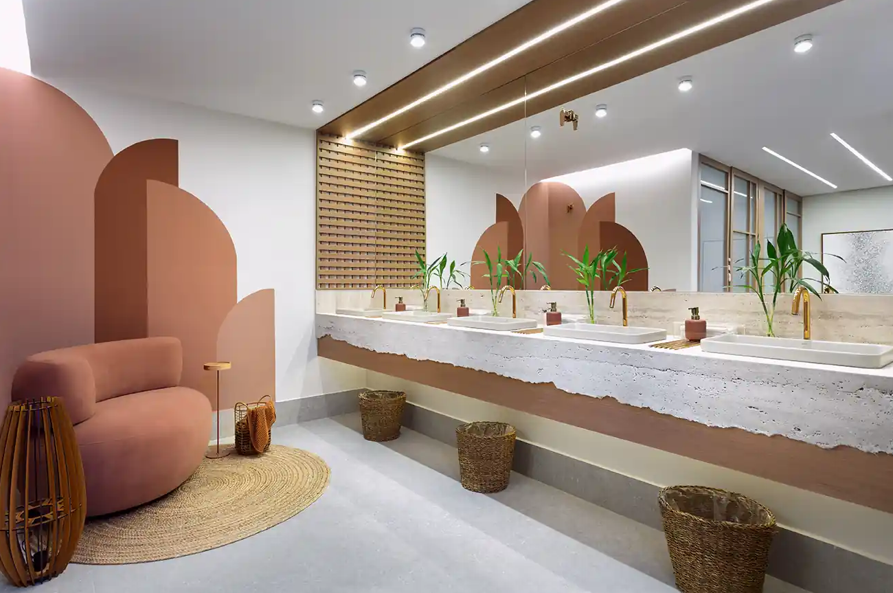 O banheiro também ganha muito charme com essa paleta. Você pode combinar revestimentos em tons de argila com madeira clara, por exemplo, e complementar o décor com vasos de cerâmica para um toque artesanal.
